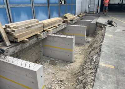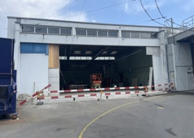 Um den Unterhalt, die Reparaturen und die Wartung der Fahrzeuge weiterhin gewährleisten zu können, musste die Fahrzeugspenglerei erweitert und den heutigen Erfordernissen angepasst werden. Einerseits bedeutete dies Eingriffe in den bestehenden Innenraum, andererseits mussten auch im ersten Raum Vergrösserungen und Anpassungen realisiert werden.
