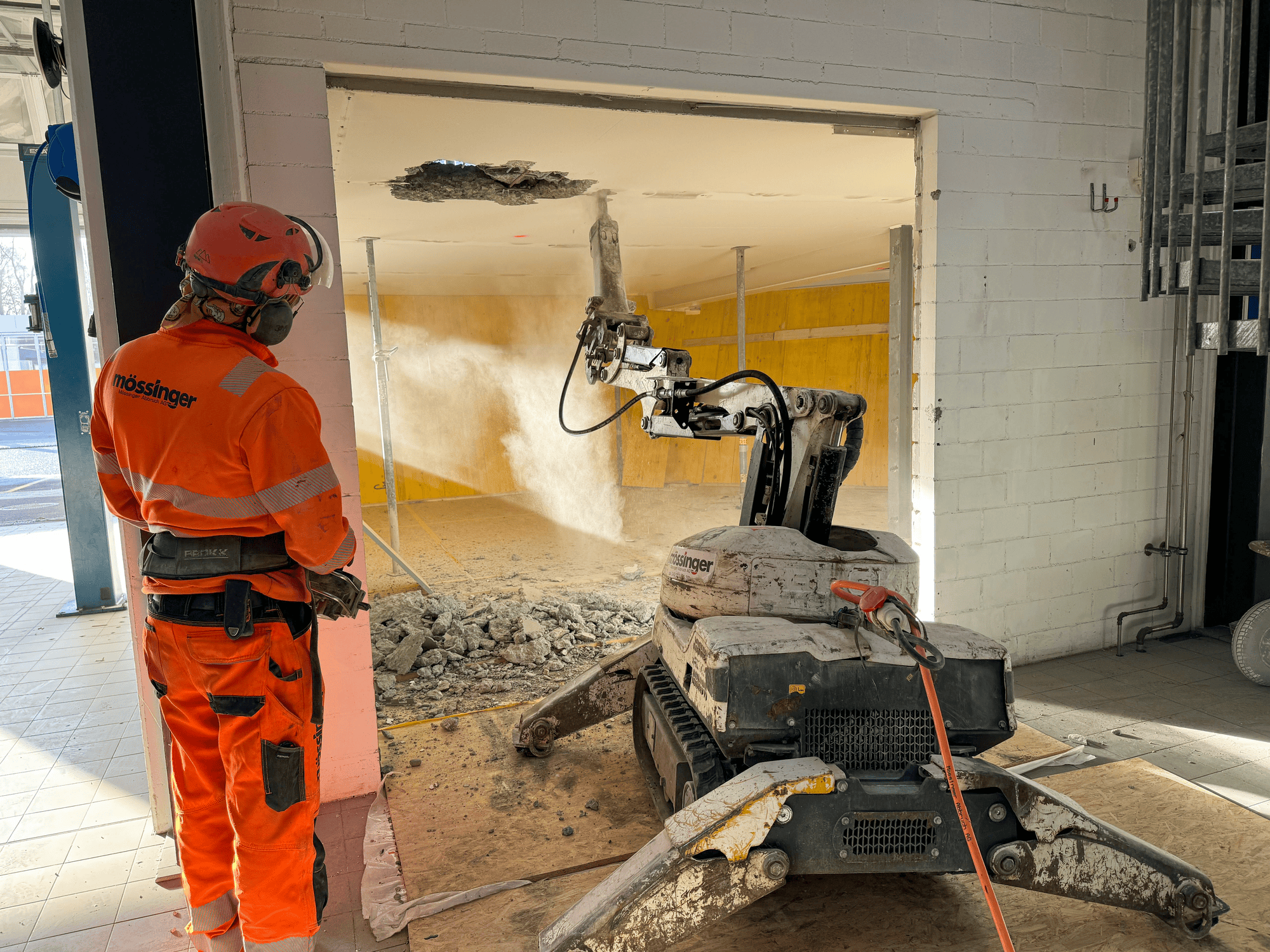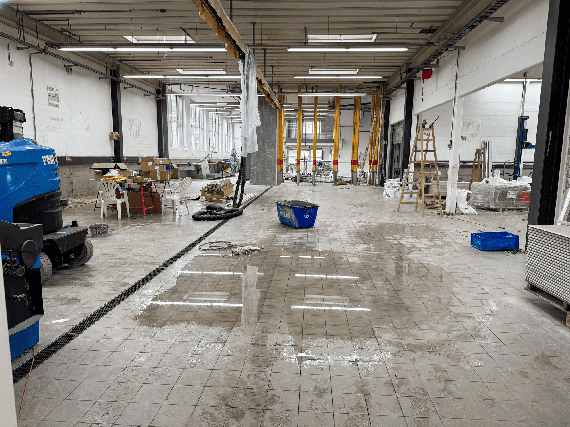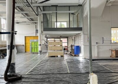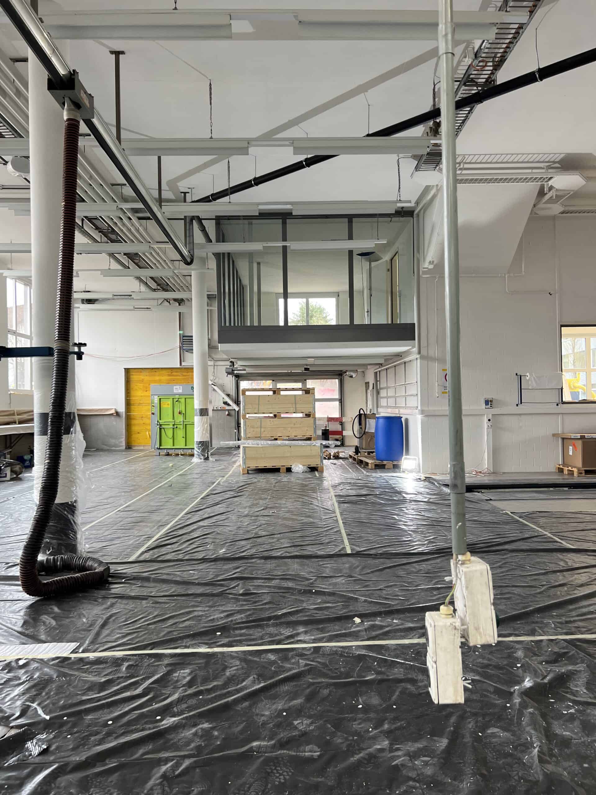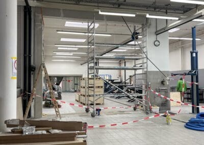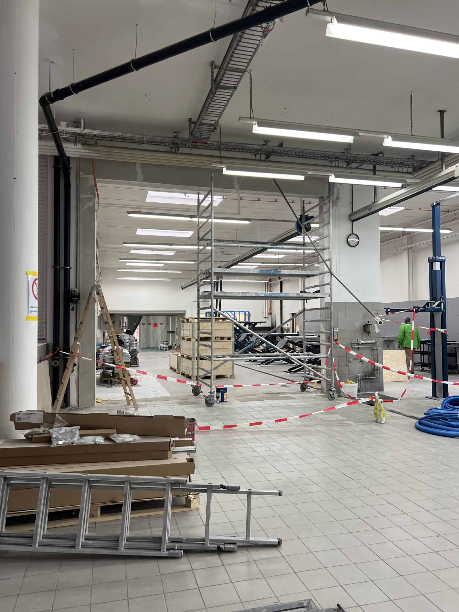 In der Werkstatt sorgen neu installierte, moderne Hebeanlagen für optimierte Arbeitsabläufe. Ein neu gestalteter Waschraum erfüllt alle heutigen Standards. Zur effizienten Bewegung von Personen und Waren innerhalb des Gebäudes wurde ein Lastenaufzug an die bestehende Fassade angebaut.