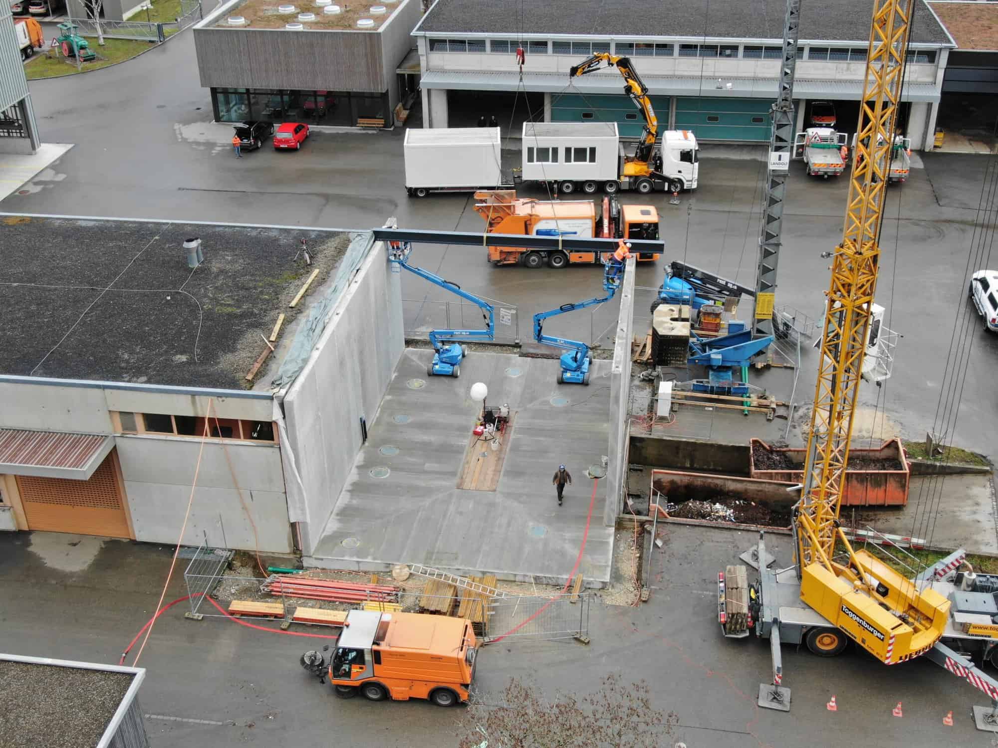 Auch Putzmaschinen müssen sauber bleiben: Für die Reinigung der Strassen- und Putzmaschinen wird ein überdachter Waschplatz erstellt. Dieser soll den Anforderungen für einen schonenden und umweltgerechten Umgang mit den Ressourcen gerecht werden.