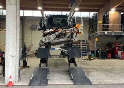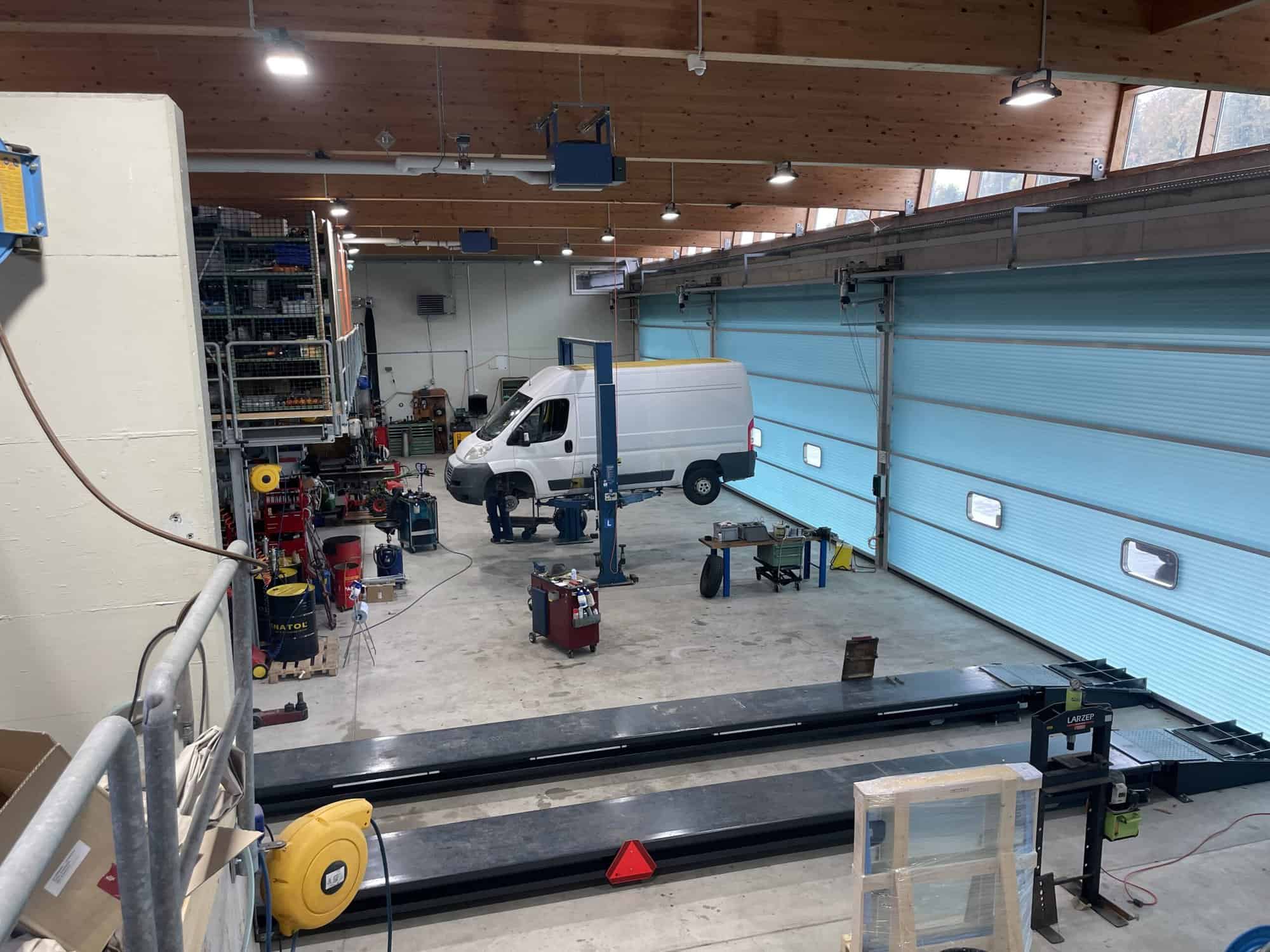 Um den Betrieb während der Realisierung aufrecht erhalten zu können, musste eine provisorische Betriebswerkstätte zur Verfügung gestellt werden. Diese konnte in der ehemalgien Salzhalle mit Hebeanlagen, Ölmanagement, Druckluftversorgung sowie weiteren Installationen eingerichtet werden. Das Provisorium wird ca. 1 Jahr betrieben.