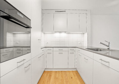 Auch hier unterzogen wir die Liegenschaft einer Komplettsanierung mit Schadstoffsanierung, Ersatz aller Küchen, Boden- und Wandbeläge und die Anpassung der Liegenschaft an die Anforderungen für behindertengerechtes Bauen.